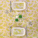 tessuto in airlaid cellulosa, rende la tavola accattivante e colorata. Coprendo il tavolo col monouso si garantisce igiene al cliente. Compostabile e sostenibile, la possibilità di abbinare tovaglie e tovaglioli monouso offre flessibilità nella scelta dello stile e della mise en place, permettendo di creare un'atmosfera personalizzata e curata.